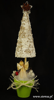 To mój drugi zimowy domek w tym roku. Pierwszy wykonałam na warsztatach z Dorotą Kopeć , a ten w tym miesiącu. W pracy wykorzystałam : bazę drewnianą, pastę strukturalną, pastę śniegową, mikrokulki, szyszki, wstążki patyczki i ręcznie wykonane kwiaty z foamiranu. Domek ma nawiercone otwory dlatego może być również zawieszony. Dla chętnych dostępny jest jeszcze w moim sklepiku http://steresa.pl/domek-zimowy.html